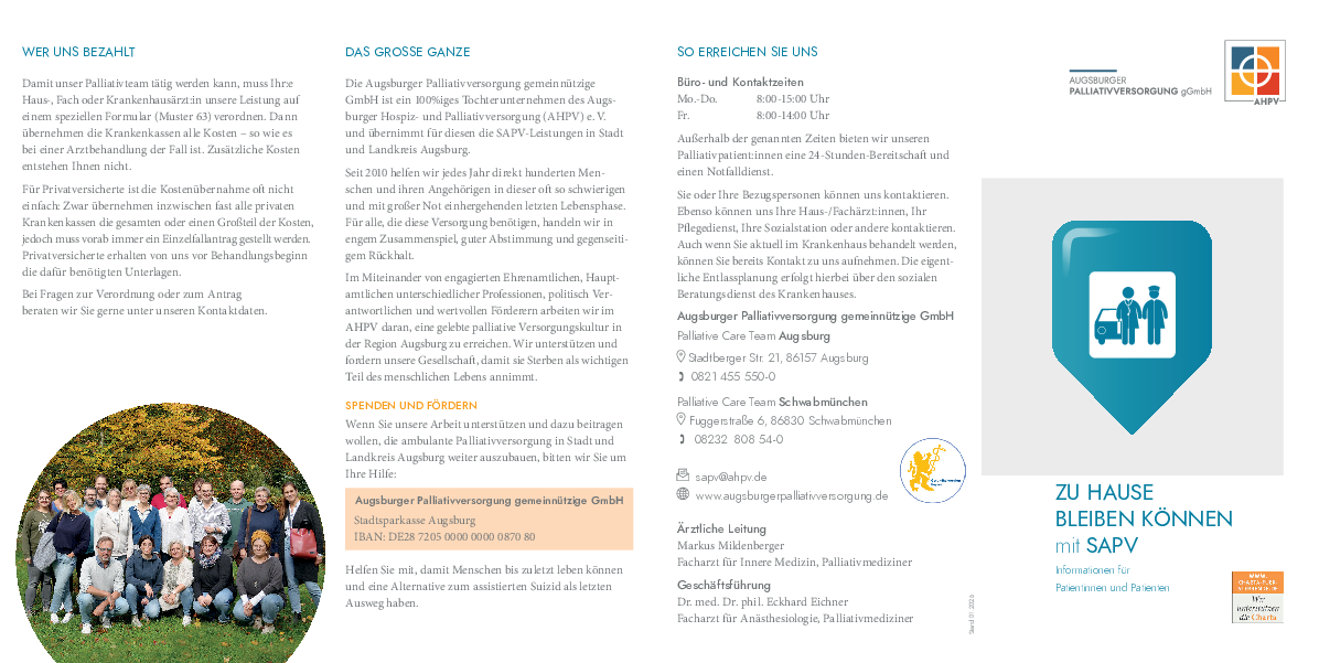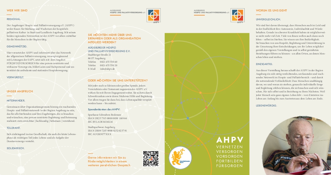 Jahresbericht der drei Organisationen Augsburger Hospiz- und Palliativversorgung e.V. (AHPV), Augsburger Palliativversorgung gemeinnützige Gmbh und des Augsburger Hospiz- und Palliativstiftung